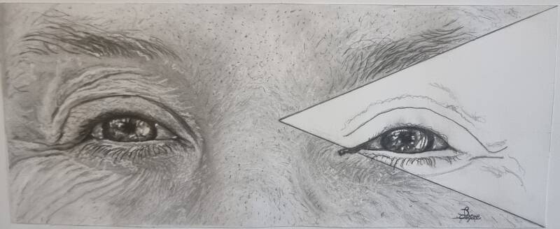 LES YEUX DE LA FIBROMYALGIE - - Travail au crayon et utilisation gomme électrique - 58 X 42 cm / Le 08/12/2024