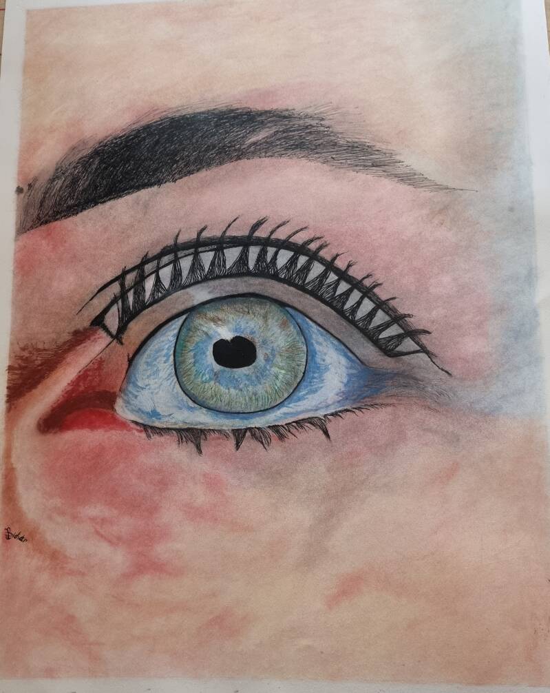 les yeux de la souffrance, dessinés avec amour et par amour. la partie non fini, représente pour moi l’avenir en maitrisant la douleur et en sublimant l’imparfait.